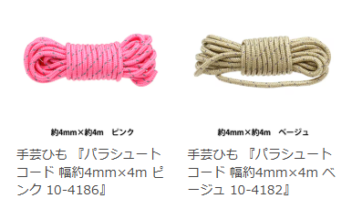 特に、3mm~4mmの太さのナイロン製パラコードが多く、アウトドアや手芸に最適です。